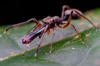 Different species of jumping spiders hunt for different prey. Some are specialized to feed almost only on Mosquitos with a preference on those who recently sucked blood. Others steal the prey out of spiderwebs and, if not careful enough, the owner of the web as well. Even other species of jumping spiders can become the prey of a jumping spider.